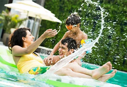 Gym, pool, bar & restaurant, library, and kid zones under one roof.
